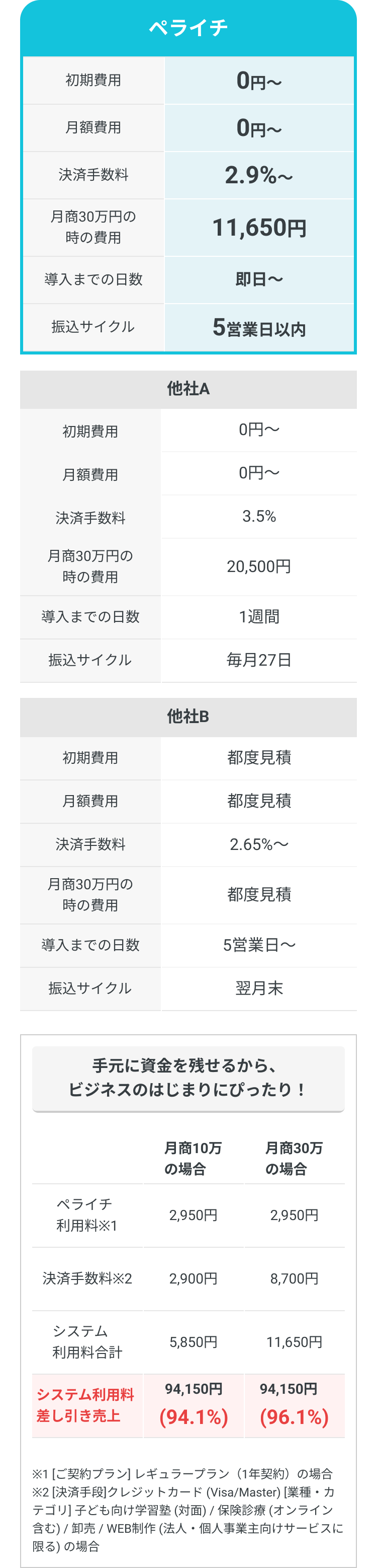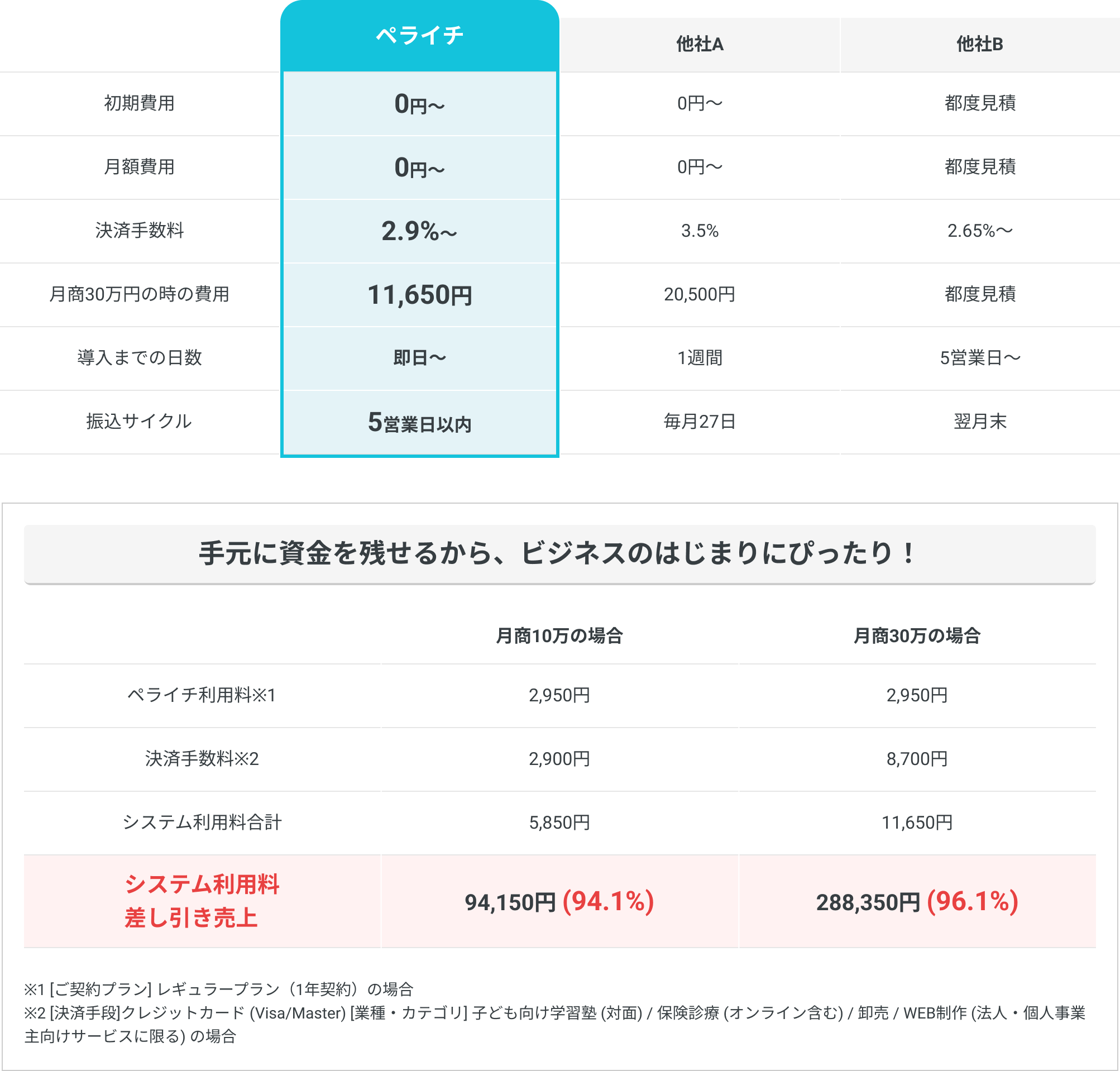 決済機能・予約機能・なんでもマーケットについては売り上げに応じて決済手数料がかかります。